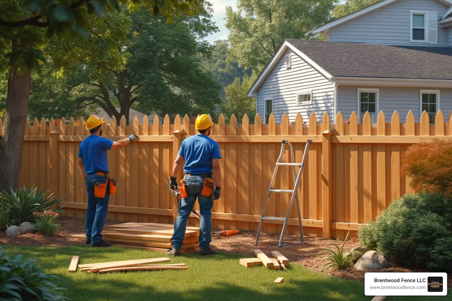 The importance of precision can't be overstated. A fence that's even slightly off-level will be noticeable from across the yard, and fixing mistakes after concrete has cured is both expensive and time-consuming. That's why professional wood fence installers follow a detailed plan and work as a coordinated team – one person might hold a panel steady while another checks for level, and a third secures it with screws.