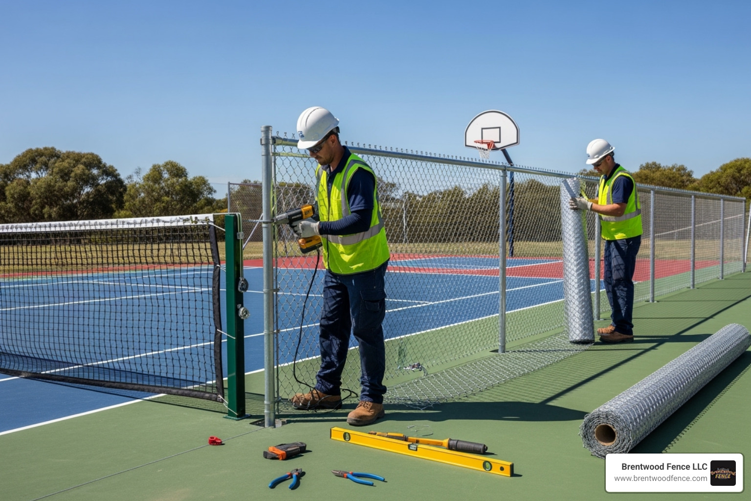 However, not all installations are the same. Height requirements vary by sport—tennis courts need 10-12 feet behind baselines, basketball courts require 10-16 feet, and pickleball courts work best with 10-12 feet. Local building codes also add a layer of complexity.